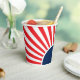 Commencez votre fête de réunion de famille avec ces tasses en papier rouge, blanc et bleu, au design simple, moderne et minimaliste. Personnalisez-les avec votre initiale monogramme au centre du cercle sur le côté gauche entouré de rayures rouges et blanches joyeuses.