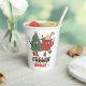 Feelin' Jolly Christmas Holidays Funny Retro Travel Paper Cups présente le texte "Feelin' Jolly" dans un script moderne accentué avec un arbre de Noël amusant et heureux et boisson chaude avec sucre de canne. Conçu par ©Evco Holidays www.zazzle.com/store/evcoholidays