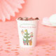 Ces tasses en papier sur mesure ont un thème de vacances d'hiver pastel et mignon. Une image d'un arbre de Noël fantaisiste est photographiée en bas, avec deux petites fées qui volent autour. Un cadeau joliment emballé est représenté sous chaque fée. Un exemple de fête de l'artisanat de Noël est imprimé en haut, avec un nom de famille. Vous pouvez personnaliser les tasses pour inclure votre propre nom ou texte personnalisé.