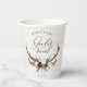 Botanique rustique de ferme stag sexe révéler décor de baby shower favoriser tasse en papier cadeau. Avec un beau feuillage aquarelle, des fleurs naturelles élégantes, des bois de cerf et de l'écriture manuscrite. Ce décor moderne de fête saura donner le ton à votre douche à venir.