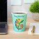 Ces tasses en papier sont un mélange de tons bleu et vert avec un lézard imaginaire festif aux couleurs vives de vert, bleu, jaune, orange tenant une feuille verte sur un bâton. Customisez le texte Joyeux anniversaire avec les modèles à l'avant et à l'arrière.