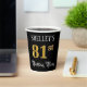 Ce luxueux et opulent design de tasse en papier à thème d'anniversaire comporte un nom modifiable et le message "81st Birthday Party". Le grand numéro "81st" a une imitation/faux motif de couleur d'inspiration or, les mots "fête d'anniversaire" sont dans un texte élégant de style script, et l'arrière - plan est coloré noir par défaut (bien qu'il puisse être customisé). Des tasses de papier fantaisie et ornées comme celle-ci pourraient être utiles lors d’une fête d’anniversaire ou d’une fête célébrant le quatre-vingt-unième anniversaire de quelqu’un. [~Z0000567]