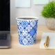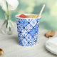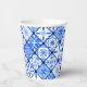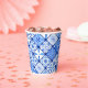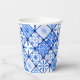 Gobelet en papier pour fête d'anniversaire avec carreaux italiens bleu et blanc.