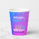 Neon tendance brillant dans le bleu foncé néo-rose vif parties scintillant coloré Sweet sixteen partie personnalisées tasses en papier.