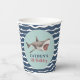 Coupes d'anniversaire de requin avec grand requin blanc et arrière - plan bleu.