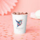 Ce design de tasse en papier est parfait pour servir les boissons de vos invités. Il présente un colibri aquarelle avec une couronne fleurie sur un arrière - plan blanc, avec un texte personnalisé en gris et rose. Cette collection comprend plusieurs colibris différents.