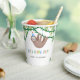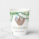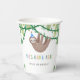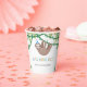 Célébrez l'anniversaire de votre enfant avec ces mignonnes tasses de papier de fête d'anniversaire paresseux ! Un adorable parfum peint à la main dans un casquette à pois bleu et blanc, accroché dans la jungle. Des vignes battantes et des feuilles de jungle décorent l'arrière - plan