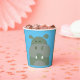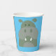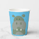 Anniversaire fête amusant tasse en papier hippo pour la décoration de table d'anniversaire. Un joli design de décoration pour la fête des enfants. L'hippo serait idéal pour une soirée à thème au zoo ou si l'enfant aime l'hippo. L'arrière - plan est bleu et l'hippo dans les tons verts.
