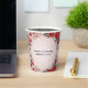 Fleurs rouges, roses et blanches entourent un double cadre doré, sur un fond rose coquillage pour créer une tasse en papier magnifique. Très élégant, et parfait pour une douche de mariée ou une fête de bachelorette.