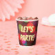 Jolies lumières de bokeh colorées et les mots : Faisons la fête dans une police blanche cool. Le design est répété des deux côtés et peut être customisé pour répondre à vos besoins. #party #drinkware #décorations