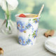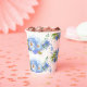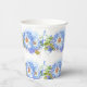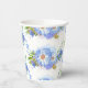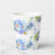 Jolies tasses en papier pour la fête de mariage en blanc et bleu barbeau, avec un motif floral de bleuet.