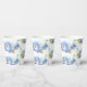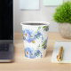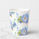 Jolies gobelets en papier pour la fête de mariage en blanc et bleu bleuet, avec un motif floral de bleuet.
