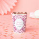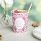 Les éléments du motif de fond de ces gobelets en papier ont été peints à la main avant d'être numérisés et disposés en un motif répétitif (et recolorés numériquement en rose et blanc). L'impression était basée sur le genre que l'on peut voir sur les pots en gingembre en chinoiserie.
