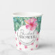 Ces gobelets en papier jetables présentent un motif floral d'hibiscus rose à l'aquarelle avec une bordure supérieure de feuilles de palmier monstera. Les mots "Bridal Shower" sont composés dans une typographie tendance. Utilisez les champs de modèle pour ajouter votre texte personnalisé. Un choix mignon pour les idées de shower de mariage luau et les décorations de shower de mariage tropical, ces gobelets sont fabriqués en papier biodégradable et écologique. Pour en voir plus sur ce thème de shower de mariage tropical, visitez https://www.zazzle.com/collections/pink_tropical_floral_bridal_shower-119042438282488106