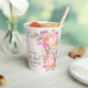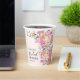 Fête de mariage printanière et estivale avec des fleurs sauvages pastel romantiques sur tasse en papier avec de jolies fleurs champêtres en rose, pêche, violet, lavande, feuilles vertes et plus, avec une typographie script brossé sur un fond rose pastel doux élégant et modifiable.