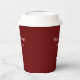 Coupe en papier rouge de Noël moderne, avec un design de typographie simple à feuillage persistant et personnalisable. Un ajout festif à votre table de dîner en cette période de fêtes.