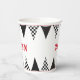 Allumez le grill et faites une fête de la course avec ces tasses en papier festif avec des drapeaux à damiers noirs et blancs.