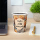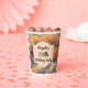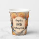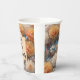 Célébrez n'importe quel âge avec une jolie tasse en papier personnalisable. Magnifique chrysanthèmes rose et orange avec papillons bleus et somptueuse végétation. Un design féminin élégant mais joli.