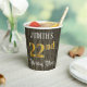 Ce design orné et luxueux de tasse en papier à thème d'anniversaire comporte un nom personnalisé et le message "22e anniversaire fête". Le grand numéro "22e" présente une imitation/un faux motif de coloriage d'inspiration or, et les mots "fête d'anniversaire" sont dans un texte élégant de style script. L'arrière - plan est décoré d'un style imitation bois ou imitation bois. Des tasses de papier aussi sophistiquées et opulentes pourraient être utiles à l’occasion d’une célébration d’anniversaire pour célébrer le vingt-deuxième anniversaire de quelqu’un. [~Z0000568]