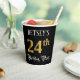 Ce design orné et fantaisiste de tasse en papier sur le thème de l'anniversaire comporte un nom personnalisable et le message "fête du 24e anniversaire". Le grand numéro "24th" a un motif de couleur d'inspiration or imitation/fausse, les mots "Birthday Party" sont dans un texte élégant de style script, et l'arrière - plan est coloré noir par défaut (bien qu'il puisse être customisé). Des tasses de papier élégantes et opulentes comme celle-ci pourraient être utiles lors d’une fête d’anniversaire qui a lieu pour honorer le vingt-quatrième anniversaire de quelqu’un. [~Z0000567]