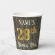 Ce design opulent et élégant de tasse de papier d'anniversaire comporte un nom personnalisé et le message "fête du 28e anniversaire". Le grand numéro "28th" est composé d'un motif de coloriage imitation/faux d'inspiration or, les mots "Birthday Party" sont en texte orné de script, et l'arrière - plan a une apparence imitation bois/imitation. De luxueuses tasses en papier de luxe comme celle-ci pourraient être utiles à une fête d’anniversaire pour célébrer le 28e anniversaire de quelqu’un. [~Z0000568]