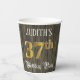 Ce design élégant et opulent de tasse en papier à thème d'anniversaire comporte un nom personnalisé et le message "37th Birthday Party". Le grand numéro "37th" a un motif de coloriage d'inspiration or imitation/fausse, et les mots "Birthday Party" sont dans un texte élégant de style script. L'arrière - plan est inspiré d'une imitation ou d'un faux style à grains de bois. De luxueuses tasses en papier ornées comme celle-ci peuvent être utilisées lors d’une fête d’anniversaire ou d’une fête célébrant le 37e anniversaire de quelqu’un. [~Z0000568]