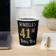 Ce design luxueux et raffiné de tasse de papier d'anniversaire comporte un nom modifiable et le message "41st Birthday Party". Le grand numéro "41st" a un motif de coloriage imitation/faux d'inspiration or, les mots "fête d'anniversaire" sont en texte orné de script, et l'arrière - plan est coloré noir par défaut (bien qu'il puisse être customisé). Des tasses de papier aussi élégantes et opulentes pourraient être utiles lors d’une fête d’anniversaire qui se tient pour célébrer le quarante et unième anniversaire de quelqu’un. [~Z0000567]