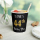 This luxurious and elegant birthday-themed paper cup design objets en editable name and the message "44th Birthday Party". The large number "44th" has an imitation/faux gold-inspired coloring pattern, the words "Birthday Party" are in opulent script-style, and the background is colored by default (although it can be customized). Opulent, ornate paper cups like this might be useful to have at birthday party g held to celebrate somebody’s 44th birthday. 2.