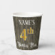 Ce design opulent et sophistiqué de tasse en papier sur le thème de l'anniversaire comporte un nom modifiable et le message "4th Birthday Party". Le grand numéro "4th" présente un motif de coloriage d'inspiration or imitation/fausse, et les mots "Birthday Party" sont dans un texte orné de style script. L'arrière - plan a un motif imitation/imitation bois inspiré des grains. Des tasses en papier luxueuses et élégantes comme celle-ci pourraient être utiles pour célébrer le quatrième anniversaire de quelqu’un. [~Z0000568]