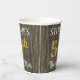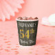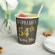 Ce design élégant et sophistiqué de tasse en papier à thème d'anniversaire comporte un nom personnalisable et le message "54th Birthday Party". Le grand numéro "54th" présente un motif de coloriage imitation/faux d'inspiration or, et les mots "Birthday Party" sont dans un texte orné de style script. L'arrière - plan présente un aspect imitation/imitation à grains de bois. De luxueuses tasses de papier comme celle-ci pourraient être utiles à une célébration d’anniversaire qui se tient pour célébrer le cinquante-quatrième anniversaire de quelqu’un. [~Z0000568]