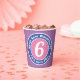 Commémorez un 6ème anniversaire avec des tasses en papier qui sont décorées avec le nom de l'enfant, ainsi que leur âge, et la date de naissance.