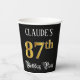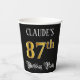 Ce design orné et luxueux de tasse en papier sur le thème de l'anniversaire comporte un nom modifiable et le message "87th Birthday Party". Le grand numéro "87th" a un motif de coloriage d'inspiration fausse/imitation or, et les mots "Anniversaire" sont dans un texte de style script opulent. L'arrière - plan est coloré en noir par défaut (bien qu'il puisse être customisé). Des tasses de papier élégantes et opulentes comme celle-ci pourraient être utiles à une fête d’anniversaire pour célébrer le 87e anniversaire de quelqu’un. [~Z0000567]