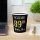 Ce design élégant et luxueux de tasse de papier d'anniversaire comporte un nom personnalisé et le message "89e anniversaire fête". Le grand numéro "89th" a une imitation/faux motif de couleur d'inspiration or, les mots "Anniversaire" sont dans un texte de style script sophistiqué, et l'arrière - plan est coloré noir par défaut (bien qu'il puisse être customisé). Des tasses de papier aussi opulentes et sophistiquées pourraient être utiles lors d’une fête d’anniversaire ou d’une fête célébrant le quatre-vingt-neuvième anniversaire de quelqu’un. [~Z0000567]
