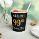 Ce design luxueux et soigné de tasse en papier à thème d'anniversaire comporte un nom modifiable et le message "99ème anniversaire fête". Le grand numéro "99th" a une imitation/faux motif de couleur d'inspiration or, les mots "Birthday Party" sont dans un texte élégant de style script, et l'arrière - plan est coloré noir par défaut (bien qu'il puisse être customisé). Des tasses de papier aussi élégantes et opulentes pourraient être utilisées lors d’une célébration d’anniversaire qui célébrerait le quatre-vingt-dix-neuvième anniversaire de quelqu’un. [~Z0000567]