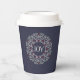 Ajoutez un style festif à votre fête de vacances avec nos tasses en papier richement colorées. Le design de vacances chic présente "JOY" en lettrage ivoire encerclé par une illustration de style art folklorique en vert sauge, rouge canneberge et ivoire, dressé contre un bel arrière - plan bleu minuit.