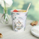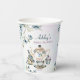 Tasses en papier personnalisées avec monogramme pour fête prénuptiale thème floral aquarelle violet bleu modèle personnalisé décor de table pour fête prénuptiale tasses en papier imprimées
