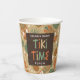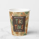 Les gobelets en papier à thème Tiki party présentent un panneau en bois rustique au centre avec une typographie "Tiki Time" et des noms personnalisés et une date bordés de masques Tiki, de fruits d'ananas, de fleurs d'hibiscus, de feuilles de palmier et de monstera. Parfait pour les célébrations à thème tropical, luau et plage telles qu'un mariage ou une fête de fiançailles, une douche ou un anniversaire.