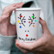 Décorez votre fête de Noël en cette période de fêtes avec ces tasses de papier de Noël uniques et modernes. Le dessin est composé d'un renne festif avec des billes suspendues et le texte du script "Joyeux Noël". Ajoutez facilement votre libellé personnalisé à ces gobelets de vacances en utilisant la section "Modifier ce modèle de design", ou cliquez sur le bouton "Customiser" pour accéder à des outils d'édition plus avancés. Les éléments correspondants se trouvent dans la collection.