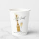 Tasses en papier pour fête de fiançailles Let's Toast. Conçues avec une belle bouteille de champagne doré aquarelle. Articles assortis dans notre collection Cava Party Design.