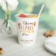 Typographie rouge, orange, jaune Thanksgiving dessous de verre personnalisé avec un texte qui dit, "Feuilles d'automne et citrouille s'il vous plaît". Customisez facilement en ajoutant votre propre photo. Envoyez cette carte personnalisée Thanksgiving photo plat à vos proches.