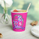 Personnalisez ces gobelets de fête d'anniversaire de la crête médiévale avec votre propre nom de fille d'anniversaire. Idéal pour l'utilisation lors d'une fête d'anniversaires de enfants médiévale aux chevaliers. Version fille avec une licorne, âge de la couronne cardiaque et nom en rose et violet. © Art graphique et design original par Sarah Trett. www.mylittleeden.com