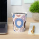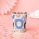 Servez vos boissons avec style avec cette tasse de papier pour fête d'anniversaire de Donut sucré. Décoré de beignets rose pastel, marron chocolat, crème et bleus garnis d'arroses et de coeurs, ce design est parfait pour une douce boutique ou une fête sur le thème des desserts. Personnalisez-vous avec le nom de votre enfant pour un détail de fête amusant et mémorable. Idéal pour les 1er anniversaires de filles, les fêtes de beignes et les desserts pastel.