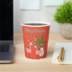 Cette tasse de fête de Noël personnalisée présente une jolie illustration de dessin animé. Deux flamants roses font la fête avec cadeaux et lumières de Noël. Un mignon bonhomme de neige se tient devant un palmier tropical. L'arrière - plan est de couleur orange vif.