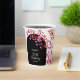 Élégante fleur de cerisier et cadre d'arche noire avec typographie vibrante sur des tasses de papier arrière - plan blanc. Tout le texte peut être customisé.