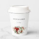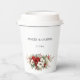 Cette conception de gobelet en papier romantique et classique sur le thème de Noël ou de l'hiver présente un bouquet de fleurs d'hiver rouges et blanches vibrantes, de pin, de baies de houx et de brindilles rustiques ainsi que des champs de texte modifiables.