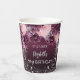 Gobelets En Papier Fleurs argentées bordeaux d'anniversaire rose étin