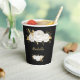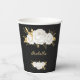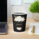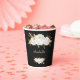 Belles fleurs blanches et feuilles or sur gobelet en papier noir