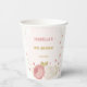 Gobelet en papier pour fête botanique avec fleurs roses et blanches et feuilles dorées.