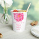 Personnalisez ces jolis tasses en papier mariage rose avec le nom de votre couple et la date du mariage ou de l'événement. Des tasses mariages utiles au printemps ou pour un mariage à thème fleuri rose, idéales pour les boissons en plein air ou pour la fête ou pour tenir des pétales roses lyophilisés ou des confettis en papier. © Image originale de Sarah Trett, peinture et design floral rose camélia www.sarahtrett.com pour www.mylittleedenweddings.com