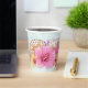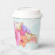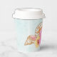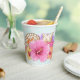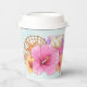 Cette belle tasse en papier présente des fleurs d'hibiscus roses et oranges entourées de coquillages de mer avec un arrière - plan de lavage d'aquarelle bleu clair. Parfait pour un luau ou une fête de sirène.